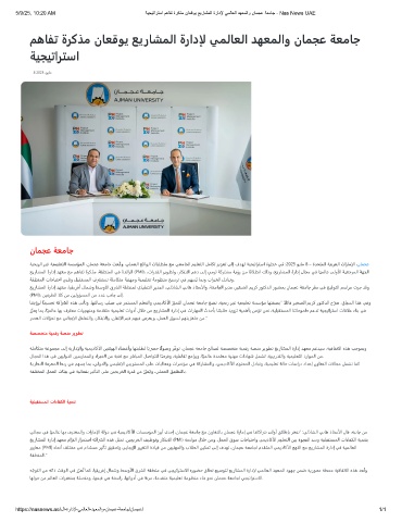5/9/25, 10:20 AM ﺔﯾﺟﯾﺗارﺗﺳا مھﺎﻔﺗ ةرﻛذﻣ نﺎﻌﻗوﯾ ﻊﯾرﺎﺷﻣﻟا ةرادﻹ ﻲﻣﻟﺎﻌﻟا دﮭﻌﻣﻟاو نﺎﻣﺟﻋ ﺔﻌﻣﺎﺟ - Nas News UAE