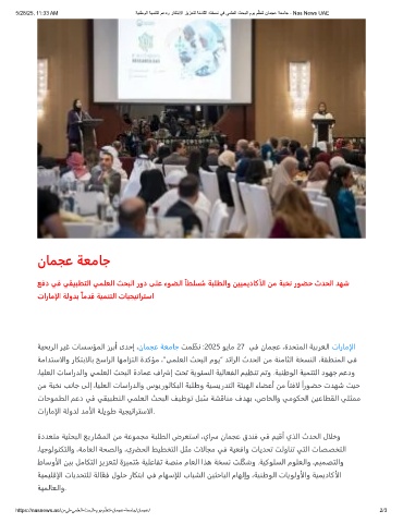 5/28/25, 11:33 AM ﺔﯾﻧطوﻟا ﺔﯾﻣﻧﺗﻟا مﻋدو رﺎﻛﺗﺑﻻا زﯾزﻌﺗﻟ ﺔﻧﻣﺎﺛﻟا ﮫﺗﺧﺳﻧ ﻲﻓ ﻲﻣﻠﻌﻟا ثﺣﺑﻟا موﯾ م ّ ظﻧﺗ نﺎﻣﺟﻋ ﺔﻌﻣﺎﺟ - Nas News UAE