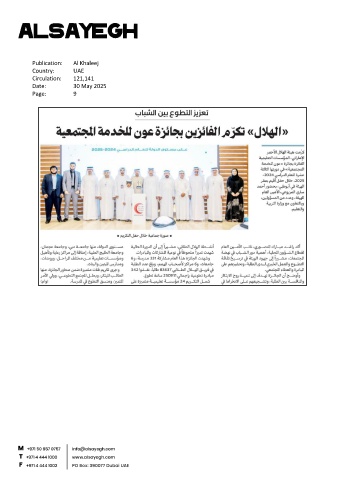 Publication: Al Khaleej Country: UAE Circulation: 121,141 Date: 30 May 2025 Page: 9