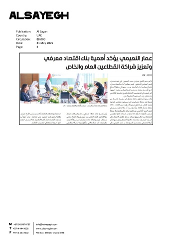 Publication: Al Bayan Country: UAE Circulation: 88,000 Date: 31 May 2025 Page: 3
