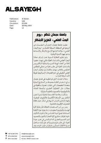 Publication: Al Watan Country: UAE Circulation: 83,000 Date: 28 May 2025 Page: 12