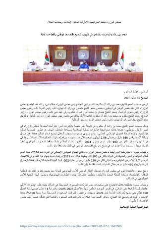 ». الله نذإب ةفاك تاعاطقلا يف ينطولا اهداصتقا عيسوتو عيونت يف تاراملإا ةلود رمتستس ..ةيجيتارتسلاا