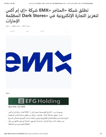 5/13/25, 1:40 PM سﻛأ مإ يإ» ﺔﻛرﺷ EMX» ﺔﻣﻠظﻣﻟا رﺟﺎﺗﻣﻟا» ﺔﻛﺑﺷ ﻖﻠطﺗ Dark Stores» ﺔﻠﺟﻣ - تارﺎﻣﻹا ﻲﻓ ﺔﯾﻧورﺗﻛﻟﻹا ةرﺎﺟﺗﻟا زﯾزﻌﺗﻟ FintechArabia