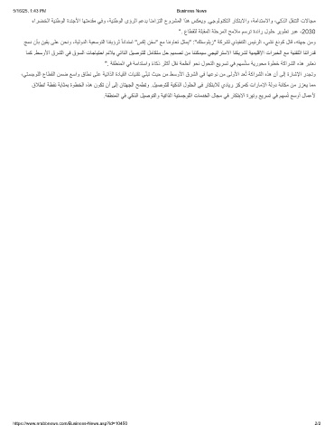 ". ﺔﻘطﻧﻣﻟا ﻲﻓ ﺔﻣادﺗﺳاو ًءﺎﻛذ رﺛﻛأ لﻘﻧ ﺔﻣظﻧأ وﺣﻧ لوﺣﺗﻟا ﻊﯾرﺳﺗ ﻲﻓ مﮭﺳُﺗﺳ ﺔﯾروﺣﻣ ةوطﺧ ﺔﻛارﺷﻟا هذھ رﺑﺗﻌﻧ
