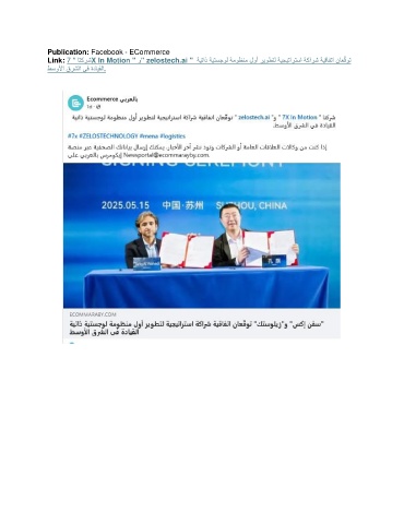 Publication: Facebook - ECommerce و Link: 7 " اتكرشX In Motion " " zelostech.ai " ةيتاذ ةيتسجول ةموظنم لوأ ريوطتل ةيجيتارتسا ةكارش ةيقافتا ناع ّ قوت طسولأا قرشلا يف ةدايقلا.