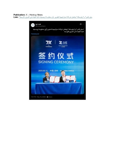 Publication: X – Hormuz News Link: " طسولأا قرشلا يف ةدايقلا ةيتاذ ةيتسجول ةموظنم لوأ ريوطتل ةيجيتارتسا ةكارش ناعقوت "كتسوليز"و "سكإ نفس