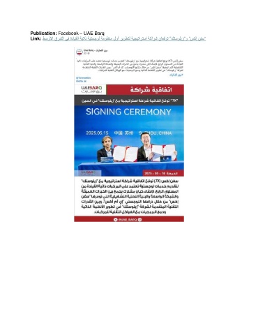 Publication: Facebook – UAE Barq Link: طسولأا قرشلا يف ةدايقلا ةيتاذ ةيتسجول ةموظنم لوأ ريوطتل ةيجيتارتسا ةكارش ناعقوت ”كتسوليز”و ”سكإ نفس“