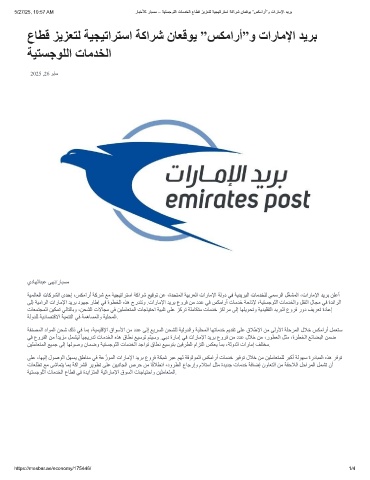 ﺔﯿﻤﻟﺎﻌﻟا تﺎﻛﺮﺸﻟا ىﺪﺣإ ،ﺲﻜﻣارأ ﺔﻛﺮﺷ ﻊﻣ ﺔﯿﺠﯿﺗاﺮﺘﺳا ﺔﻛاﺮﺷ ﻊﯿﻗﻮﺗ ﻦﻋ ،ةﺪﺤﺘﻤﻟا ﺔﯿﺑﺮﻌﻟا تارﺎﻣﻹا ﺔﻟود ﻲﻓ ﺔﯾﺪﯾﺮﺒﻟا تﺎﻣﺪﺨﻠﻟ ﻲﻤﺳﺮﻟا ﻞّﻐﺸﻤﻟا ،تارﺎﻣﻹا ﺪﯾﺮﺑ ﻦﻠﻋأ