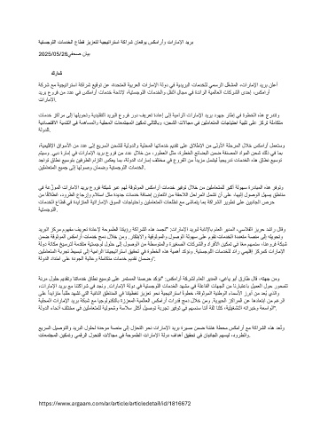 ةكرش عم ةيجيتارتسا ةكارش عيقوت نع ،ةدحتملا ةيبرعلا تاراملإا ةلود يف ةيديربلا تامدخلل يمسرلا لّغشملا ،تاراملإا ديرب نلعأ