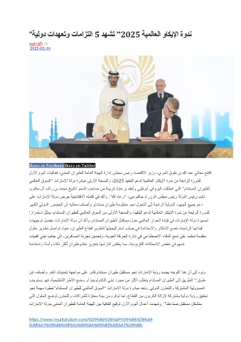ﻲﻤﻟﺎﻌﻟا قﻮﺴﻟا“ تارﺎﻣﻹا ﺔﻟود ةردﺎﺒﻣ ﻰﻟوﻷا ﺔﺨﺴﻨﻟاو ، 2025 ﺬﯿﻔﻨﺘﻟا ﻢﻋﺪﻟ ﺔﯿﻤﻟﺎﻌﻟا وﺎﻜﯾﻹا ةوﺪﻧ ﻦﻣ ﺔﻌﺑاﺮﻟا ةروﺪﻠﻟ