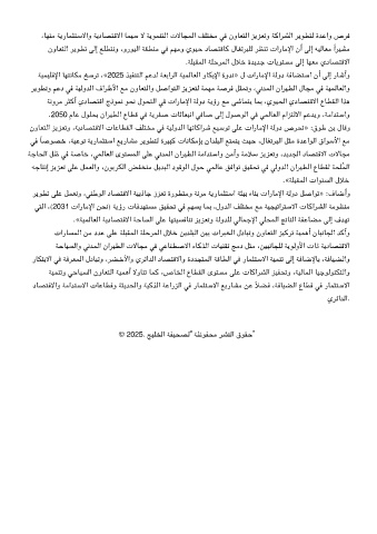 نوﺎﻌﺘﻟا ﺰﻳﺰﻌﺗو ،ﺔﻳدﺎﺼﺘﻗﻻا تﺎﻋﺎﻄﻘﻟا ﻒﻠﺘﺨﻣ ﻓ ﺔﻴﻟوﺪﻟا ﺎﻬﺗﺎﻛاﺮﺷ ﻊﻴﺳﻮﺗ ﻠﻋ تارﺎﻣﻹا ﺔﻟود صﺮﺤﺗ» :قﻮﻃ ﻦﺑ لﺎﻗو