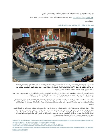 يبرعلا يعامتجلااو يداصتقلاا سلجملل 115 ـلا ةرودلا ةسائر نيرحبلا ملست تاراملإا