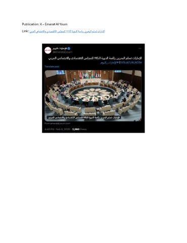 Publication: X – Emarat Al Youm Link: يبرعلا يعامتجلااو يداصتقلاا سلجملل 115ـلا ةرودلا ةسائر نيرحبلا ملست تاراملإا