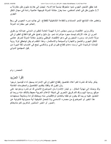 2/24/25, 4:48 PM ﺎﯾﺳﺎﯾﻗ ءادأ لﺟﺳﯾ تارﺎﻣﻹا ﻲﻓ نارﯾطﻟا عﺎطﻗ - Arabic World News | ﺔﯾرﺎﺑﺧﻹا طﯾﺣﻣﻟا ﺔﻛﺑﺷ