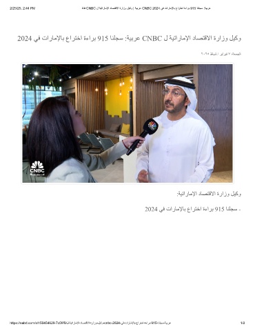 2/25/25, 2:44 PM ةﺎﻧﻗ CNBC ل ﺔﯾﺗارﺎﻣﻹا دﺎﺻﺗﻗﻻا ةرازو لﯾﻛو | ﺔﯾﺑرﻋ CNBC 2024 ﻲﻓ تارﺎﻣﻹﺎﺑ عارﺗﺧا ةءارﺑ 915 ﺎﻧﻠﺟﺳ :ﺔﯾﺑرﻋ