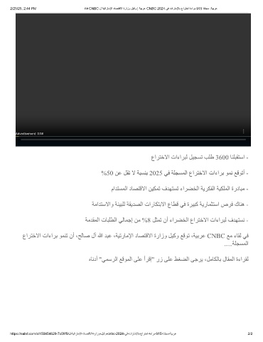 2/25/25, 2:44 PM ةﺎﻧﻗ CNBC ل ﺔﯾﺗارﺎﻣﻹا دﺎﺻﺗﻗﻻا ةرازو لﯾﻛو | ﺔﯾﺑرﻋ CNBC 2024 ﻲﻓ تارﺎﻣﻹﺎﺑ عارﺗﺧا ةءارﺑ 915 ﺎﻧﻠﺟﺳ :ﺔﯾﺑرﻋ