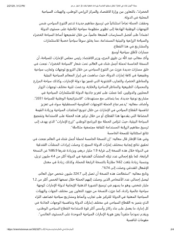 نأ ،ﺔﺣﺎﻴﺴﻠﻟ تارﺎﻣإلا ﺲﻠﺠﻣ ﺲﻴﺋر دﺎﺼﺘﻗالا ﺮﻳزو ،يﺮﻤﻟا قﻮﻃ ﻦﺑ ﷲ ﺪﺒﻋ ﻲﻟﺎﻌﻣ ﺪﻛأو