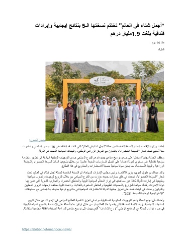 تحت ،ملاعلا يف ءاتش لمجأ ةلمحل ةسماخلا ةخسنلا نأ ،ةحايسلل تاراملإا سلجم سيئر داصتقلاا ريزو ،يرملا قوط نب اللهدبع دكأو