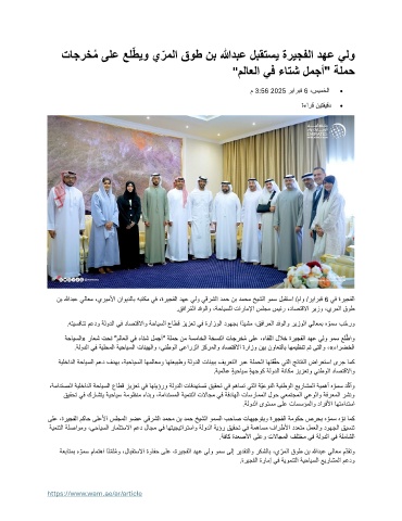 نب اللهدبع يلاعم ،يريملأا ناويدلاب هبتكم يف ،ةريجفلا دهع يلو يقرشلا دمح نب دمحم خيشلا ومس لبقتسا /ماو /رياربف 6 يف ةريجفلا