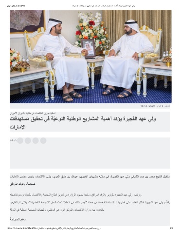 2/21/25, 1:54 PM تارﺎﻣﻹا تﺎﻓدﮭﺗﺳُﻣ ﻖﯾﻘﺣﺗ ﻲﻓ ﺔّﯾﻋوﻧﻟا ﺔﯾﻧطوﻟا ﻊﯾرﺎﺷﻣﻟا ﺔﯾﻣھأ دﻛؤﯾ ةرﯾﺟﻔﻟا دﮭﻋ ﻲﻟو