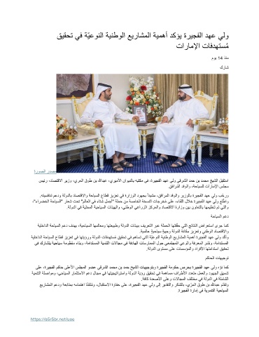ةيلخ ادلا ةحايسلا عاطق زيزعت يف اهتيؤرو ةلودلا تافدهتسُم قيقحت يف مهاست يتلا ةّيعونلا ةينطولا عيراشملا ةيمهأ ةريجفلا دهع يلو دّكأو
