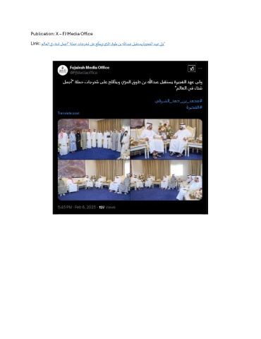 Publication: X – FJ Media Office ّ ُ ّ Link: ملاعلا يف ءاتش لمجأ" ةلمح تاجرخم ىلع علطيو يرلما قوط نب اللهدبع لبقتسي ةريجفلا دهع يلو"