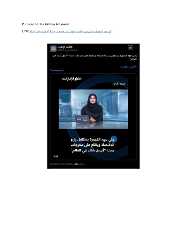 Publication: X – Akhbar Al Emarat ّ Link: ملاعلا يف ءاتش لمجأ" ةلمح تاجرخم ىلع علطيو داصتقلاا ريزو لبقتسي ةريجفلا دهع يلو"