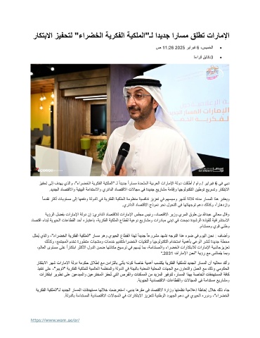 زيفحت ىلإ فدهي يذلاو ،"ءارضخلا ةيركفلا ةيكلملا" ـل ًاديدج ًاراسم ةدحتملا ةيبرعلا تاراملإا ةلود تقلطأ / ماو / رياربف 6 يف يبد