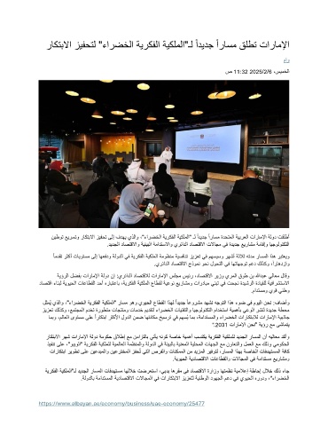 نيطوت عيرستو راكتبلاا زيفحت ىلإ فدهي يذلاو ،"ءارضخلا ةيركفلا ةيكلملا" ـل ًاديدج ًاراسم ةدحتملا ةيبرعلا تاراملإا ةلود تقلطأ