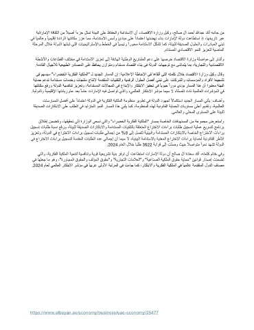 يف مهسيس "ءارضخلا ةيركفلا ةيكلملا" ـل ديدجلا راسملا نإ :ةيملاعلإا ةطاحلإا يف اهاقلأ يتلا هتملك للاخ داصتقلاا ةرازو ليكو لاقو