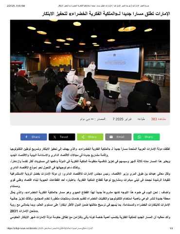ﺎﯾﺟوﻟوﻧﻛﺗﻟا نﯾطوﺗ ﻊﯾرﺳﺗو رﺎﻛﺗﺑﻻا زﯾﻔﺣﺗ ﻰﻟإ فدﮭﯾ يذﻟاو ،«ءارﺿﺧﻟا ﺔﯾرﻛﻔﻟا ﺔﯾﻛﻠﻣﻟا» ـﻟ ًادﯾدﺟ ًارﺎﺳﻣ ةدﺣﺗﻣﻟا ﺔﯾﺑرﻌﻟا تارﺎﻣﻹا ﺔﻟود تﻘﻠطأ
