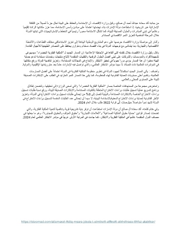 يف مهسيس ”ءارضخلا ةيركفلا ةيكلملا“ ـل ديدجلا راسملا نإ :ةيملاعلإا ةطاحلإا يف اهاقلأ يتلا هتملك للاخ داصتقلاا ةرازو ليكو لاقو
