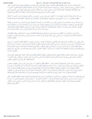 ﻢﮭﺴﯿﺳ ”ءاﺮﻀﺨﻟا ﺔﯾﺮﻜﻔﻟا ﺔﯿﻜﻠﻤﻟا“ ـﻟ ﺪﯾﺪﺠﻟا رﺎﺴﻤﻟا نإ :ﺔﯿﻣﻼﻋﻹا ﺔطﺎﺣﻹا ﻲﻓ ﺎھﺎﻘﻟأ ﻲﺘﻟا ﮫﺘﻤﻠﻛ لﻼﺧ دﺎﺼﺘﻗﻻا ةرازو ﻞﯿﻛو لﺎﻗو