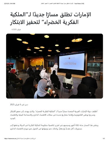 2/24/25, 8:44 AM رﺎﻛﺗﺑﻻا زﯾﻔﺣﺗﻟ "ءارﺿﺧﻟا ﺔﯾرﻛﻔﻟا ﺔﯾﻛﻠﻣﻟا"ـﻟ اًدﯾدﺟ ا ً رﺎﺳﻣ ﻖﻠطﺗ تارﺎﻣﻹا - Nas News UAE