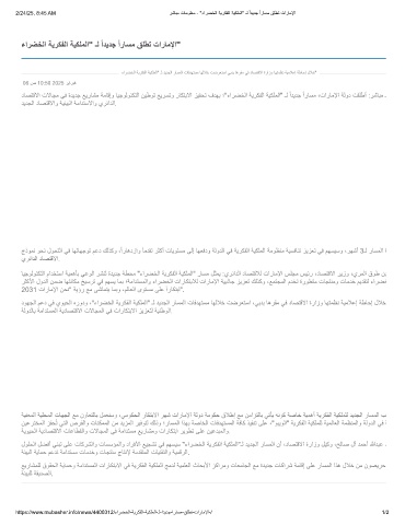 ﺎﯾﺟوﻟوﻧﻛﺗﻟا مادﺧﺗﺳا ﺔﯾﻣھﺄﺑ ﻲﻋوﻟا رﺷﻧﻟ ةدﯾدﺟ ﺔطﺣﻣ "ءارﺿﺧﻟا ﺔﯾرﻛﻔﻟا ﺔﯾﻛﻠﻣﻟا" رﺎﺳﻣ لﺛﻣﯾ :يرﺋادﻟا دﺎﺻﺗﻗﻼﻟ تارﺎﻣﻹا سﻠﺟﻣ سﯾﺋر ،دﺎﺻﺗﻗﻻا رﯾزو ،يرﻣﻟا قوط نﺑ