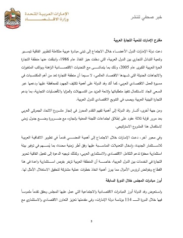 رﯿرﺤﺘ ﺔﯿﻗﺎﻔﺘا لﯿﻌﻔﺘ ﻰﻟإ ةوﻋدﻟا ﻪﯿﺠوﺘ كﻟذﻛو ، ﻲﺒرﻌﻟا يرﺎﻤﺜﺘــﺴﻻاو يدﺎــﺼﺘﻗﻻا لﻤﺎﻛﺘﻟا مﻋدﺘ ةزﻔﺤﻤ ﺔﯿرﺎﻤﺜﺘــﺴا