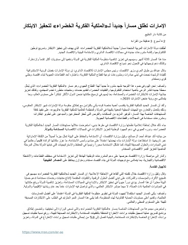 نيطوت عيرستو راكتبلاا زيفحت ىلإ فدهي يذلا ،»ءارضخلا ةيركفلا ةيكلملا«ـل ًاديدج ًاراسم ةدحتملا ةيبرعلا تاراملإا ةلود تقلطأ