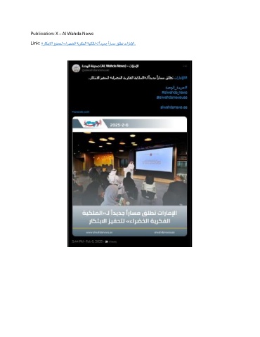 Publication: X – Al Wahda News ً ً Link: #راكتبلاا زيفحتل »ءارضخلا ةيركفلا ةيكللما«ـل اديدج اراسم قلطت تاراملإا..