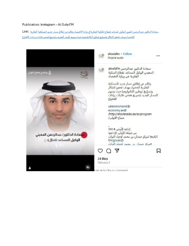 Publication: Instagram – Al Oula FM