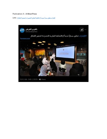Publication: X – Al Bilad Press ً ً Link: #راكتبلاا زيفحتل »ءارضخلا ةيركفلا ةيكللما«ـل اديدج اراسم قلطت تاراملإا ِ