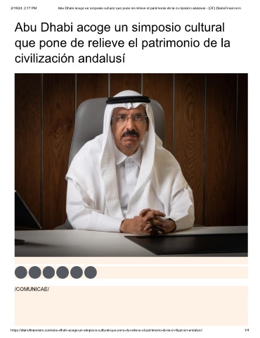 2/19/24, 2:17 PM Abu Dhabi acoge un simposio cultural que pone de relieve el patrimonio de la civilización andalusí - {DF} DiarioFinanciero