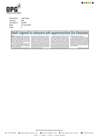 Publication: Gulf Today Country: UAE Circulation: 49,500 Date: 13 June 2025 Page: 2