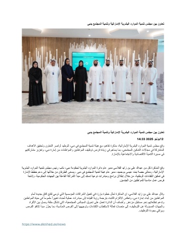 فادهلأا قيقحتو نواعتلا رصاوأ ديطوتل ،يبد يف عمتجملا ةيمنت ةئيه عم ،مهافت ةركذم ،ةيتاراملإا ةيرشبلا دراوملا ةيمنت سلجم عقو