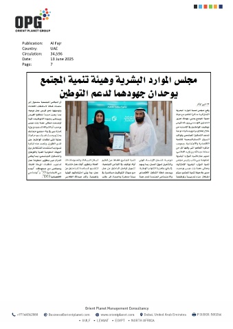 Publication: Al Fajr Country: UAE Circulation: 34,596 Date: 13 June 2025 Page: 7