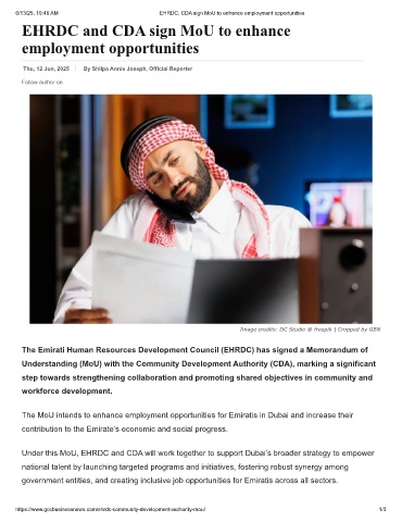 Under this MoU, EHRDC and CDA will work together to support Dubai’s broader strategy to empower