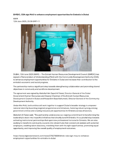 DUBAI, 12th June 2025 (WAM) -- The Emirati Human Resources Development Council (EHRDC) has