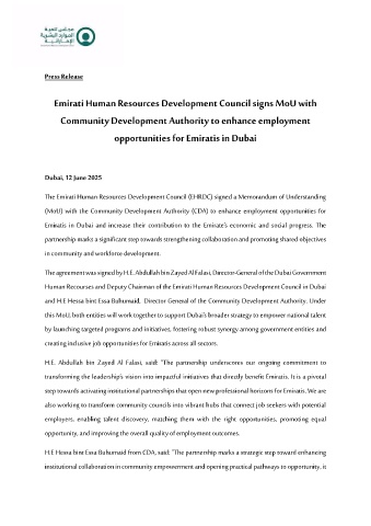 H.E Hessa bint Essa Buhumaid from CDA, said: "The partnership marks a strategic step toward enhancing