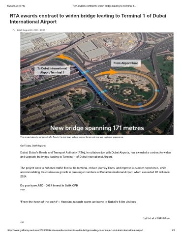 https://www.gulftoday.ae/news/2025/08/24/rta-awards-contract-to-widen-bridge-leading-to-terminal-1-of-dubai-international-airport  1/3