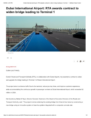 8/26/25, 2:46 PM           Dubai International Airport: RTA awards contract to widen bridge leading to Terminal 1 - Aletihad News Center