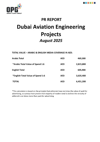 TOTAL VALUE – ARABIC & ENGLISH MEDIA COVERAGE IN AED.